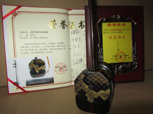 二胡制作大師丁家彭先生1949年出生樂器世家,17歲隨其祖父學(xué)琴藝,并深得精髓,其聰穎好學(xué),悉心鉆研與 探求二胡制作,博得同行的欽佩贊許,更得了許多知名演奏家的稱贊,充分認(rèn)識(shí)到二胡制作每個(gè)環(huán)節(jié),都對(duì)二胡制作都有影響力,因此對(duì)二胡的選材,選料,蟒皮都十分嚴(yán)格,二胡整體穩(wěn)定性良好,環(huán)境干擾影響極小。
